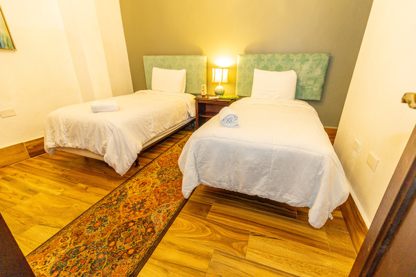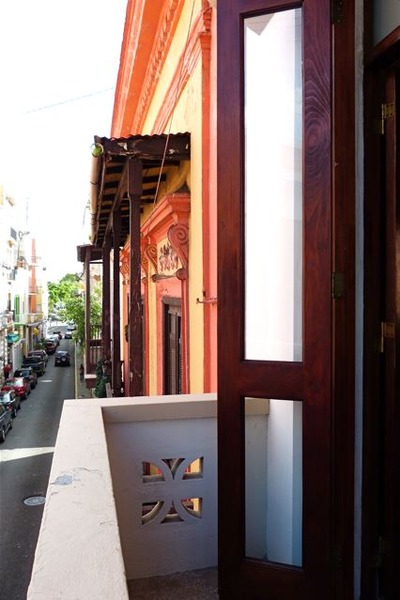 City view two bedroom with approx 350 square feet 1 king & 2 twin beds with veranda over looking the city of San Juan, restored antique wood furnishings, original floors, local art, Moroccan accents, and high ceilings. Spanish wooden door opens to a balcony overlooking the city with chairs for your enjoyment. Submerge into our historic feel while still pampering yourself with comfort with our microfiber linens and towels, hypoallergenic pillows and the exclusive line of organic bath products Archive. Includes free high speed Wifi, desk, flat screen TV with HD channels, and 24 hr concierge service. One suite per floor, 5 floor walk up Hotel.